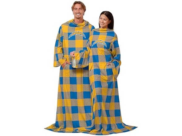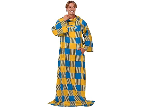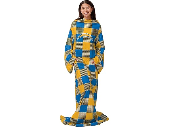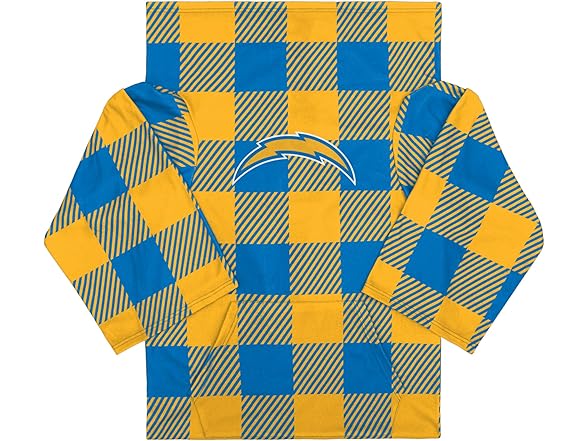 FOCO Los Angeles Chargers NFL Buffalo Plaid Oversized Wearable Throw Blanket - 48" x 71"