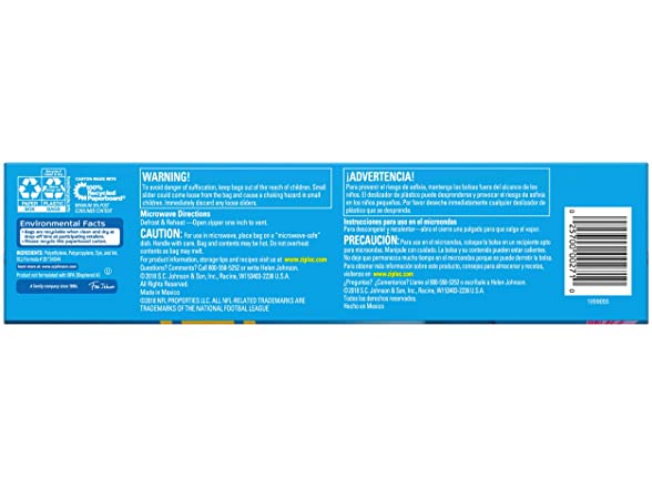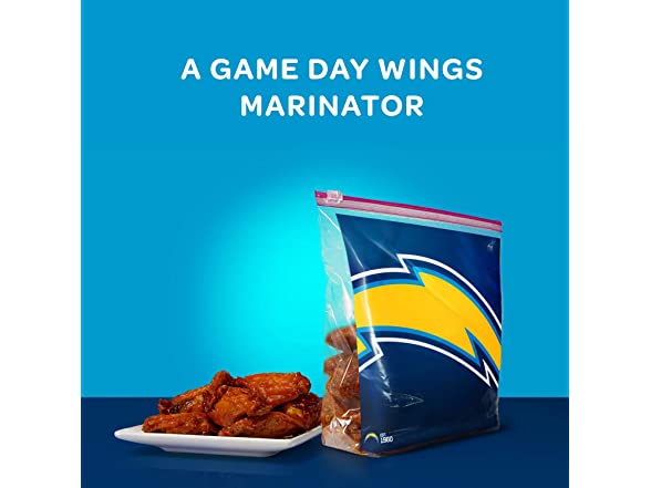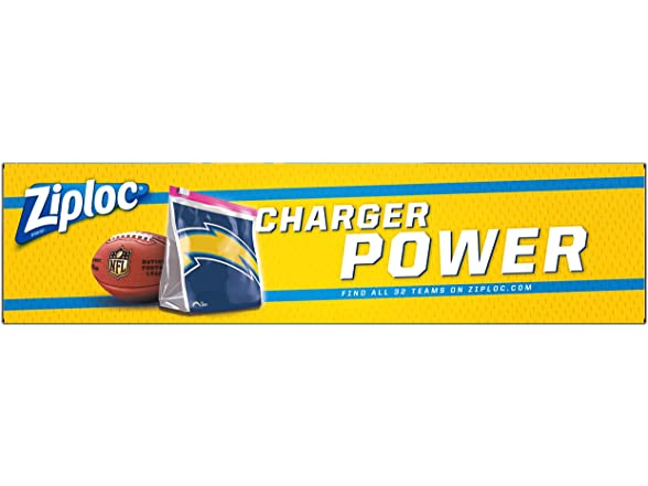 Ziploc Slider Storage Gallon Bag, Great for Grab-and-go Snacking, Tailgating or homegating, 20 Count- NFL LA Chargers