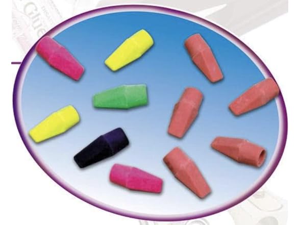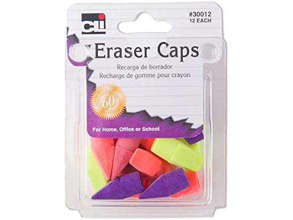 Charles Leonard Pencil Eraser Caps, Assorted Colors, 12 Erasers per Pack, 12 Packs (30012)