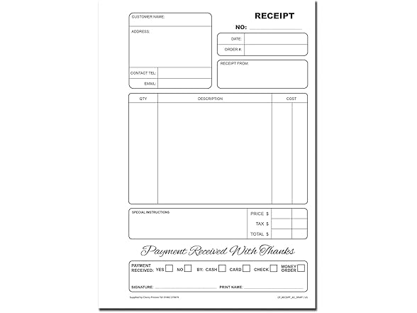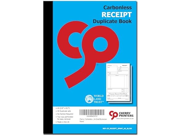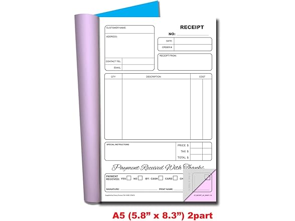 Cherry | Carbonless NCR | Receipt Book | Duplicate | A5 | S+L | Perfect for Small Businesses