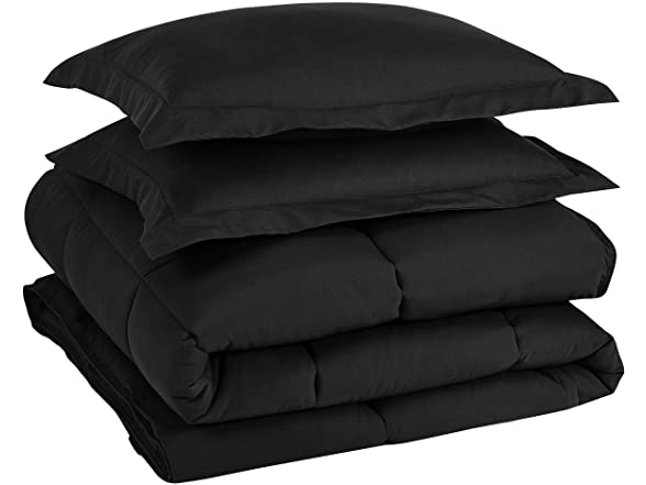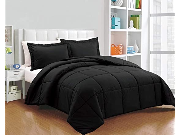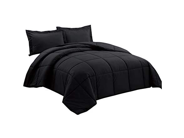 Chezmoi Collection 3-Piece Down Alternative Comforter Set (Queen, Black)