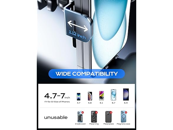 【CASE FRIENDLY】 The phone holder car charger supports charging through phone cases up to 6mm thick. Please note that cases made of metal, external attachments such as credit cards, grips, uneven surface and stands will interfere with charging