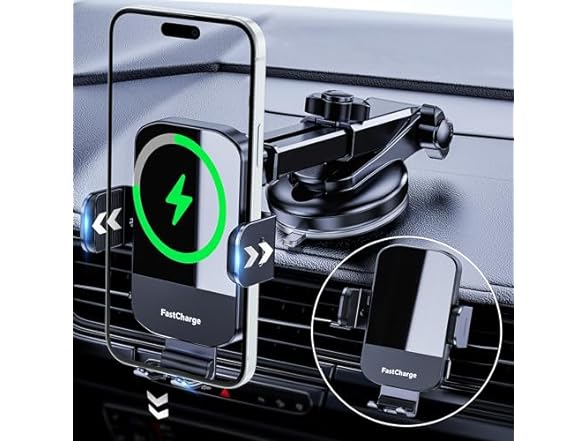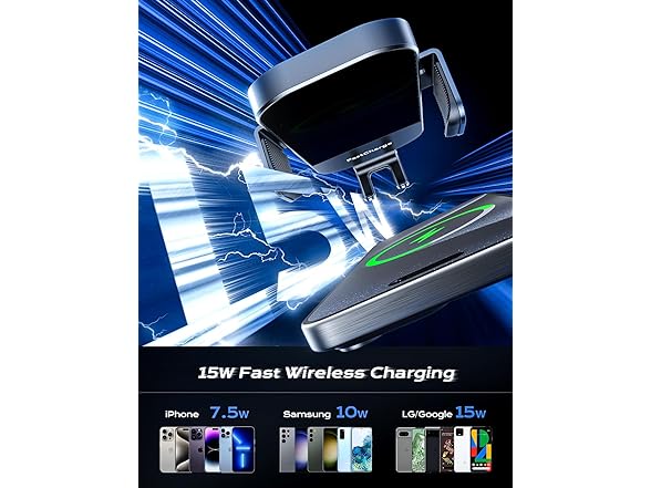 【WIRELESS CAR CHARGER】 Built-in upgraded chip, CHGeek wireless car charger mount intelligently identify and charges your device with the fastest speed in safe. Support max 15W max Fast Charger for LG V50 / V35 / V30,max 10W Fast Charger for Samsung Galaxy S22 Ultra / S21+ / S20 / Note 10+, Max 7.5W Fast Charger for iPhone 15/14/13/12 Pro Max/11 / XS Max/XS, 5W for Other Enabled Phones. For 10W, 7.5W fast charging mode, QC 3.0 car charger adapter is required as its power source