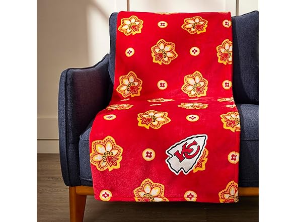 Vera Bradley Women's Fleece NFL Oversized Throw Blanket (Multiple Teams Available), Kansascitychiefsonred/Yellowbandana, One Size