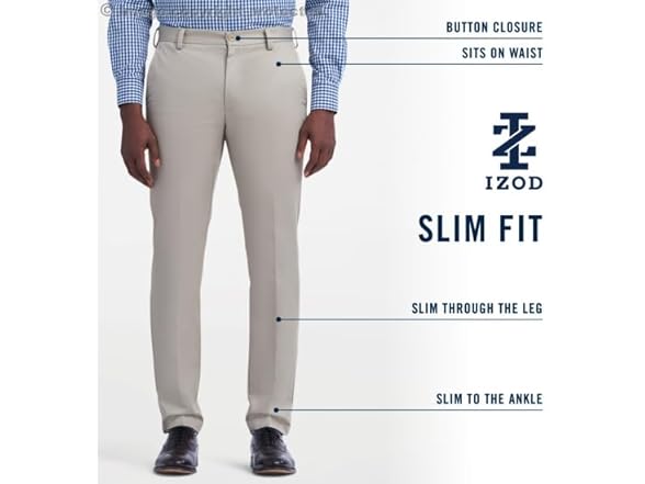IZOD Men's American Chino Flat Front Slim Fit Pant, Navy, 34W x 30L