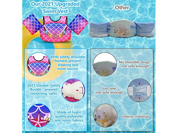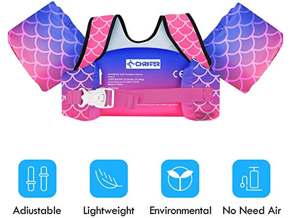 Chriffer Kids Swim Vest for 30-50 Pounds Boys and Girls, Toddler Floats with Shoulder Harness Arm Wings for 2,3,4,5,6,7 Years Old Baby Children Sea Beach Pool