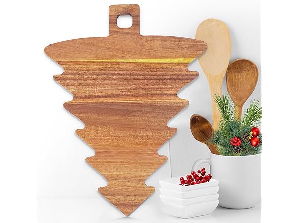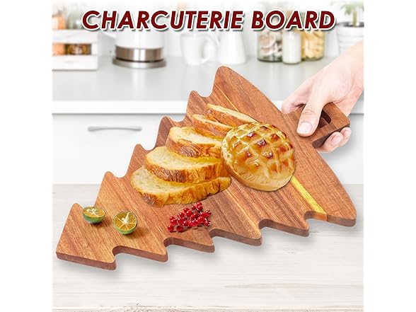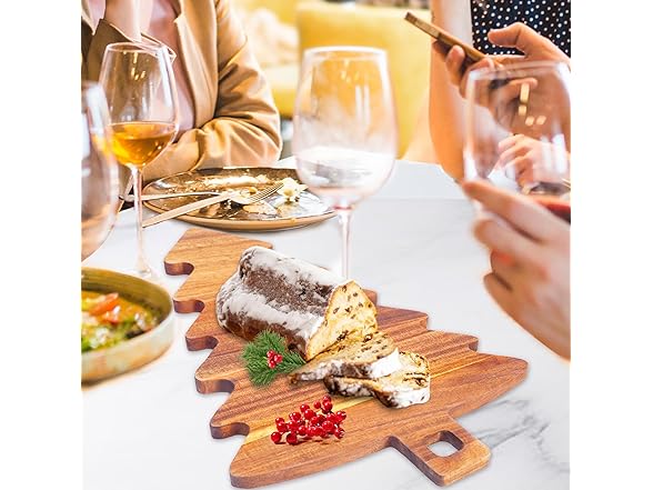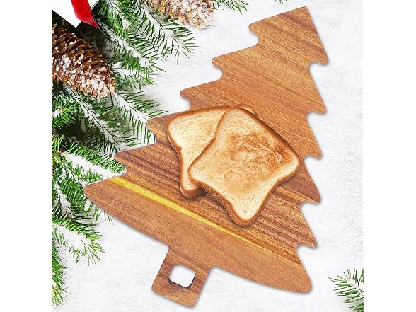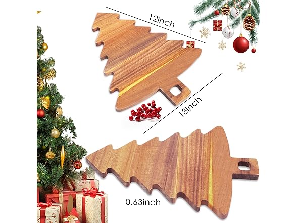 Christmas Tree Shaped Cutting Board,Christmas Tree Charcuterie Board Wood Serving Tray,Wooden Cutting Board Cheese Board XMS Decoration for Kitchen (Brown) (2)