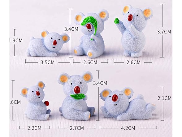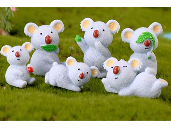 6 Pcs Cute Miniature Koala Bear Figurines Animal Mini Koala Figure Collection Playset, Koala Cake Topper, DIY Dollhouse Decoration Home Garden Micro Landscape Plant Pots Decor