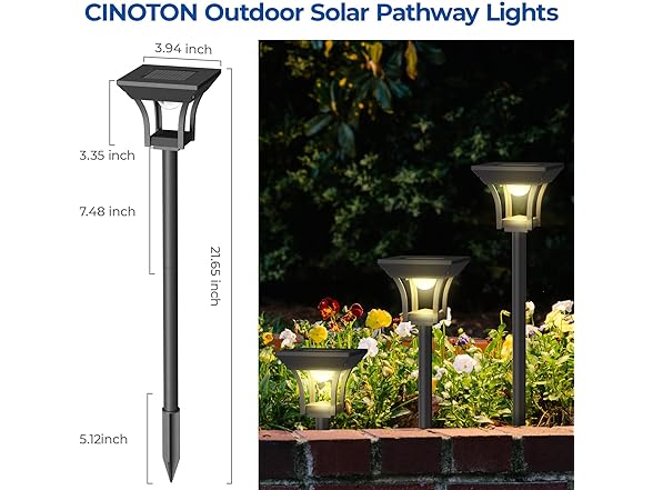 - 【Energy-Efficient Versatility】These solar-powered LED path lights provide an eco-conscious and economical solution to enhance your outdoor aesthetics. Ideal for illuminating pathways, driveways, walkways, gardens, and patios, they effortlessly brighten various spaces including lawns, yards, porches, front doors, pool and balcony areas.
