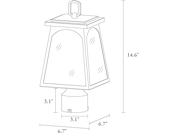 - [Overall Size] The dimension of the lamp post light fixture is 6.7" L x 6.7" W x 14.6" H. This black outdoor post light fixture is ideal for your garden, backyard, courtyard, patio, balcony, porch, entryway, pathway, walkway, driveway, parking lot, garage, etc