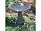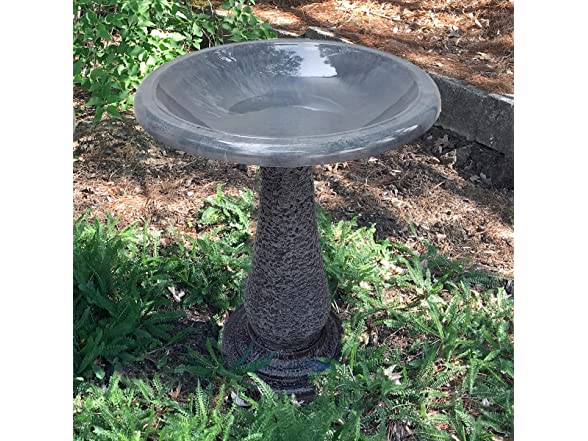 Tierra Garden 25 in. Fiber Clay Bird Bath with Gloss Bowl/Rim and Matte Stucco Base - Dark Grey