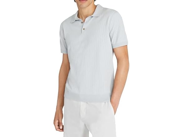 CLUB MONACO Men's Ss Stitch Polo, Lt Grey/Gris Clair, Large