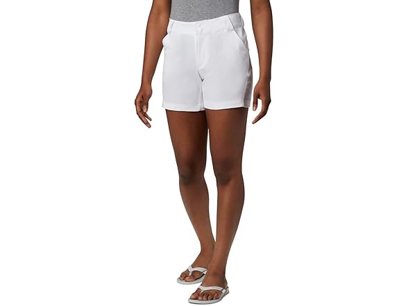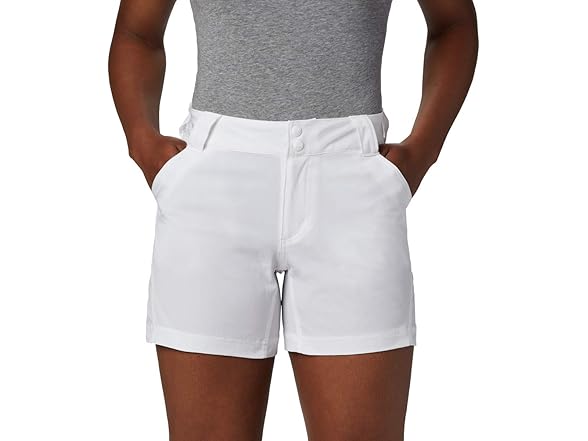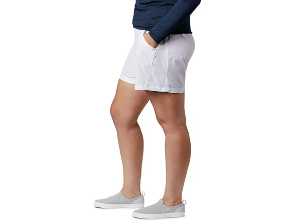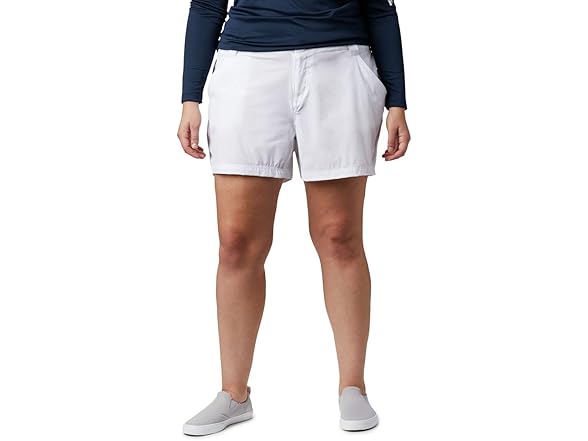 Whether you're fishing or keeping things light and casual, the Columbia Women's PFG Coral Point III Shorts are a staple for hotter outdoor days. Columbia's PFG line is loved by everyone, but specifically designed with water enthusiasts in mind. The high quality materials used to craft these women's shorts are what make it so coveted, while its modern classic fit and colors choices provide style and comfort. The technology featured in these shorts are what make them so special. The UPF 50 sun protection shields your skin from harmful UVA and UVB rays to prevent long-term sun damage – integrated into a nylon/elastane blend material, it provides a hint of give and comfortable stretch. These shorts feature two front pockets, a zippered back pocket and a partial elastic waist – an essential for outdoor activity. Columbia offers our Columbia PFG Coral III Shorts in multiple colors and sizes. Extended sizing available. Regular Fit. To ensure the size you choose is just right, please refer to our sizing chart. To find your waist measurement, measure around your natural waistline. And for your inseam measurement, measure from the top of the interior leg to the bottom of the knee.