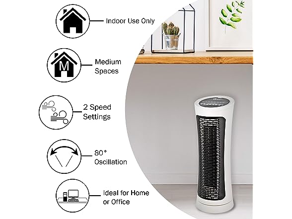 Comfort Zone Oscillating Digital Tower Heater with Digital Thermostat, Built-in Overheat Sensor, and Power Indicator Light, White