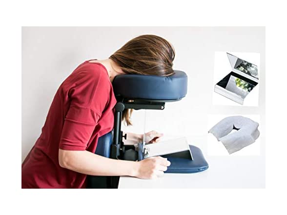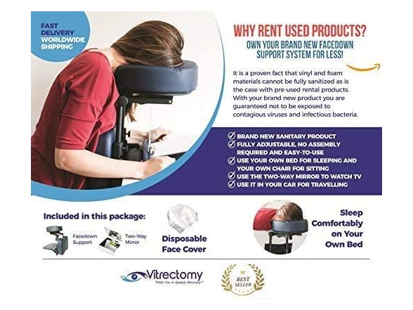 Complete Face Down Support System Package Post Vitrectomy, Macular Hole and Retinal Detachment Surgery Recovery Equipment + 2 Way Mirror to Watch TV+ Disposable Cover, Blue