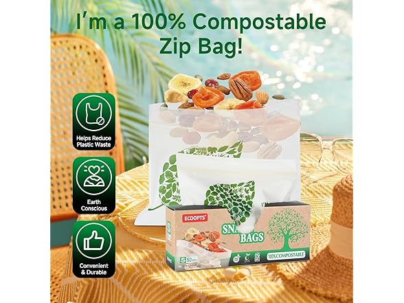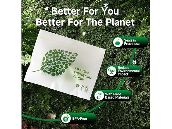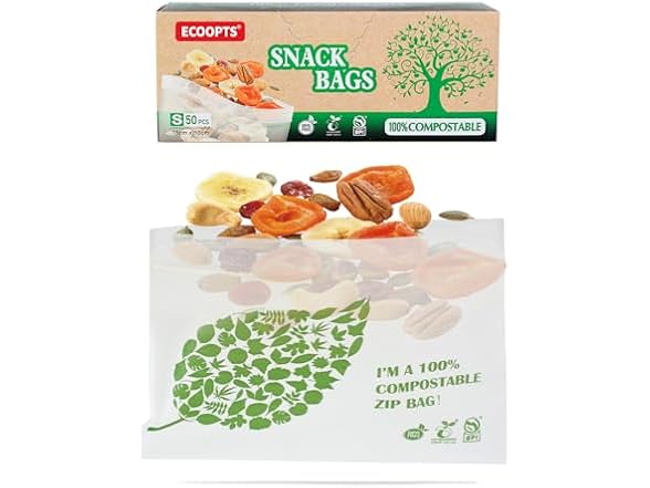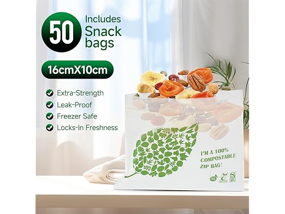 Compostable Snack Food Storage Bags Freezer and Leak Proof, 50Pcs Eco Zip Bags Seal well for Blueberries,Food and Snack Plant-Based BPA-free (50)