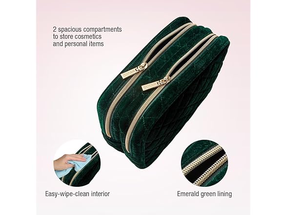 Conair Women's Double Zip Organizer-Toiletry Travel Bag-Makeup-Gifts for her, Evergreen, 1 Count (Pack of 1)