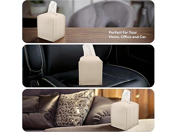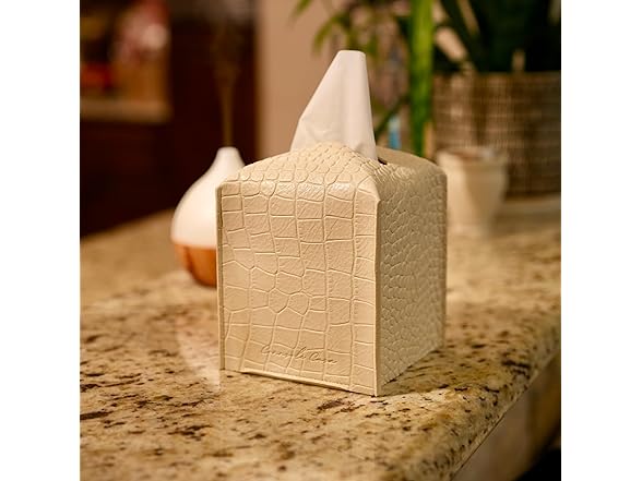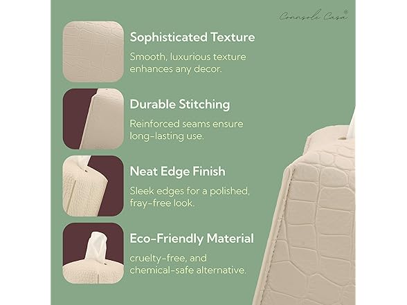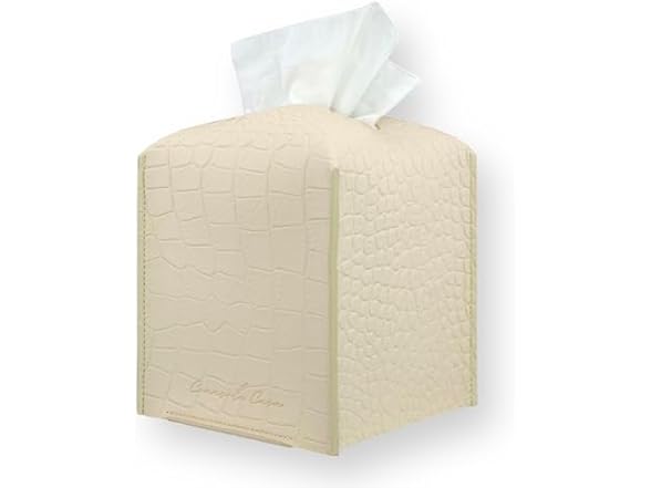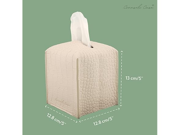 Connsole Casa Premium PU Leather Tissue Box Holder‚Modern Cover for Home, Office, Car‚Stylish Cube Organizer for Standard Kleenex Tissues ‚ Durable, Easy Refill, Crocodile Design (Beige)