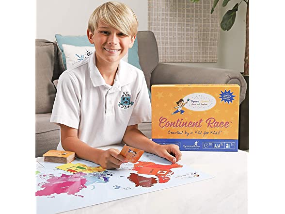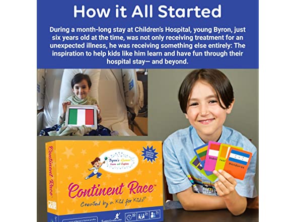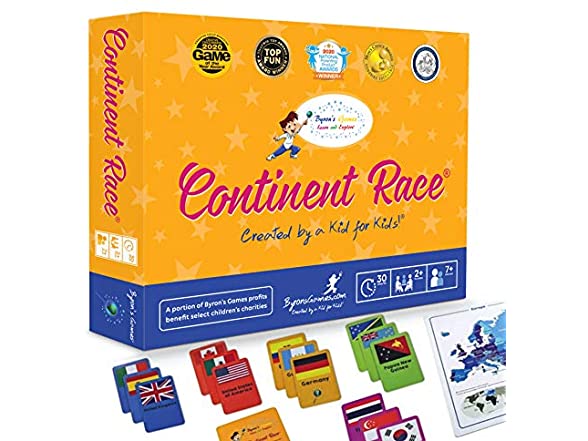 - CREATED BY A KID FOR KIDS: 2020 GAME OF THE YEAR AWARD - Continent Race Geography Game for kids was created by 6 year old Byron during a long hospital stay. He combined his passion for geography with a desire to help boys and girls like him learn and have fun during their hospital stay - and beyond! For 2+ players