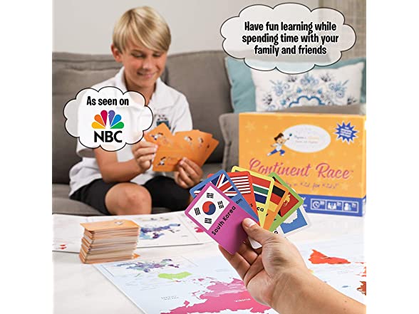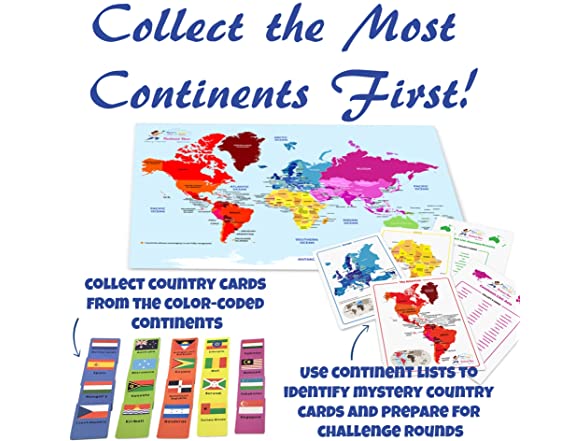- A GAME THE WHOLE FAMILY WILL LOVE: Play this fast-paced learning and educational game for kids at home or in school, individually or in teams. It’s a race around the globe to see who can collect the most countries from each continent first. Recommended for ages 7 and up