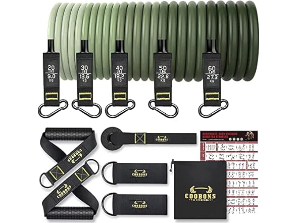 Resistance Bands Set Workout Bands, 5 Stackable Exercise Bands with Handles,1 Resistance Loop Bands, 2 Fitness Ankle Straps,2 Ankle Exercise Bands,Door Anchor, Pink Carry Bag,Guide Book