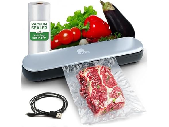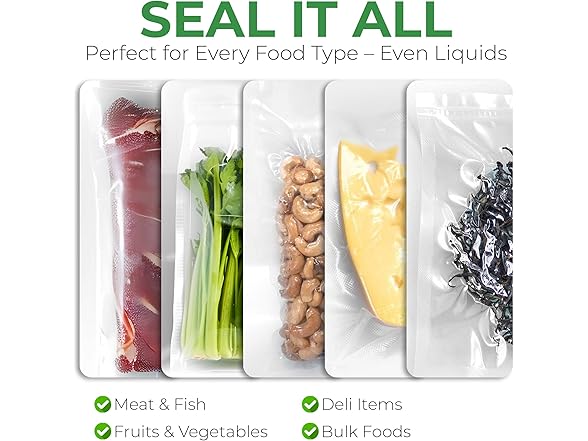 - Vacuum Seal Bags Included - Our vacuum seal machine for food is ready to use right out of the box! That's because the commercial vacuum sealer includes 1 roll of vaccum seal bags measuring 77" x 11".