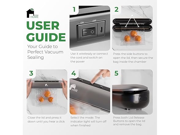 - Versatile Charging Options - Our vacuum sealers can be charged effortlessly via the included type-C charger. Whether at home or on the go, the food sealer can be powered up with ease and convenience.