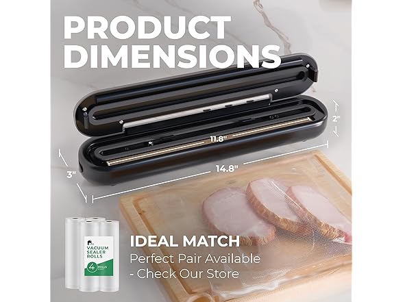 - Seals In Just 10 Seconds - Experience lightning-fast sealing with our 10-second seal time. The food vacuum sealing machine has a built-in cutter and an 11.8" sealing width accommodating various bag sizes.