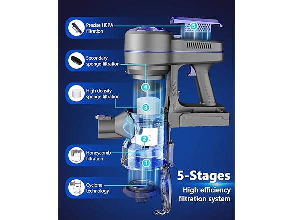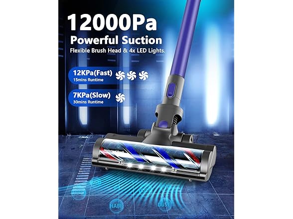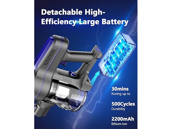 Cordless Vacuum, Stick Cordless Vacuum Cleaner with 2200mAh Powerful Lithium Bat