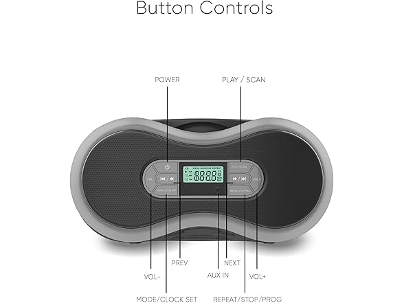 Core Innovations Portable Bluetooth CD Boombox with Digital FM Radio