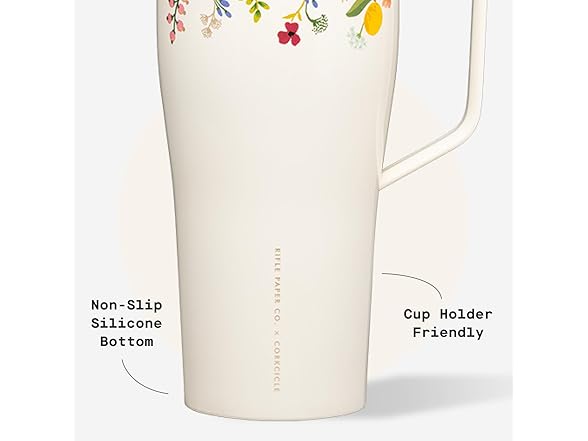 Whether you're heading to the gym, cruising through errands, or hitting the trail, the Corkcicle Cold Cup XL is your reliable hydration sidekick. With a generous 30 oz capacity and built-in handle, this insulated tumbler makes it easy to stay refreshed throughout your day. Designed for convenience, durability, and modern style, this cold cup is packed with performance features that match your busy lifestyle.The triple-insulated stainless steel construction keeps your favorite cold beverages chilled for up to 12 hours—ideal for iced water, smoothies, or cold brew coffee. Its spill-proof centerline lid includes a flexible silicone straw tab that lets you sip from any angle comfortably and cleanly. The ergonomic handle and flat side design provide a comfortable, secure grip, whether you're walking, driving, or relaxing poolside.With its slim profile and non-slip silicone bottom, the Cold Cup XL fits most standard car cupholders and stays upright wherever you set it down. The BPA-free build ensures peace of mind with every refill while helping you reduce single-use plastics. And with its polished, minimalist silhouette, it looks just as good on your desk as it does on a hike.Perfect for commuters, travelers, and anyone who needs serious hydration on-the-go, the Cold Cup XL is ready to roll whenever you are.At Corkcicle, our mission is to make every sip an experience. Our products are designed with innovation and modern style, blending performance and aesthetics to elevate your everyday moments. Every Corkcicle product is completely reusable, so you can sip sustainably while keeping the good times flowing.