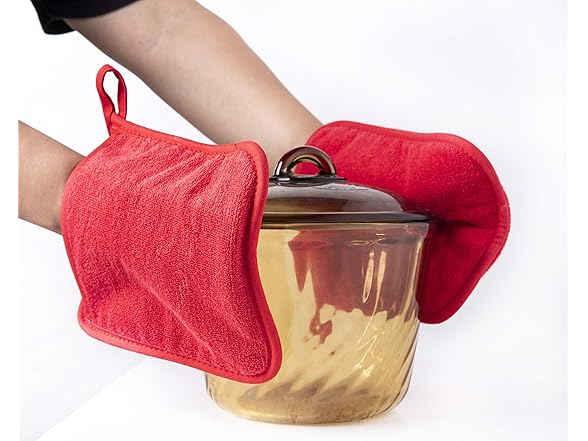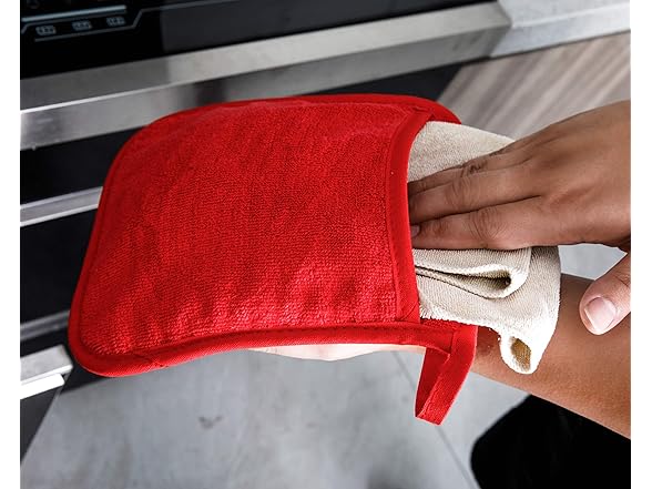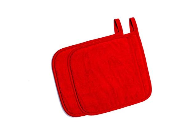 Cotton Pot Holders with Pockets, Potholers with Great Heat Resistance, Hot Pads, Trivets for Kitchen Cooking and Baking Set of 2 Red