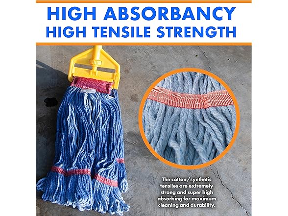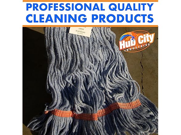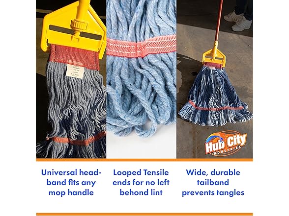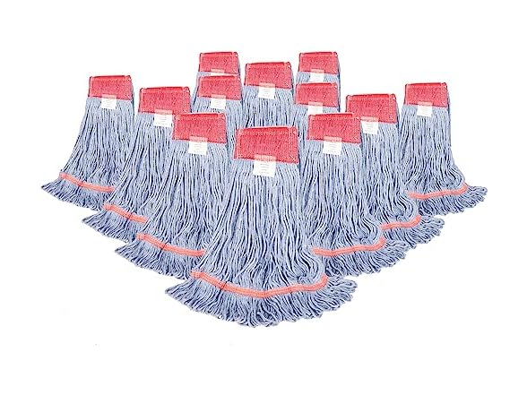 Hub City Industries Cotton/Synthetic Wet Mop Head, Cleaning Supplies, Replacement Looped End Mop Head, High Absorbency, High Tensile Strength, Launderable, Medium Size, Blue (Pack of 12)