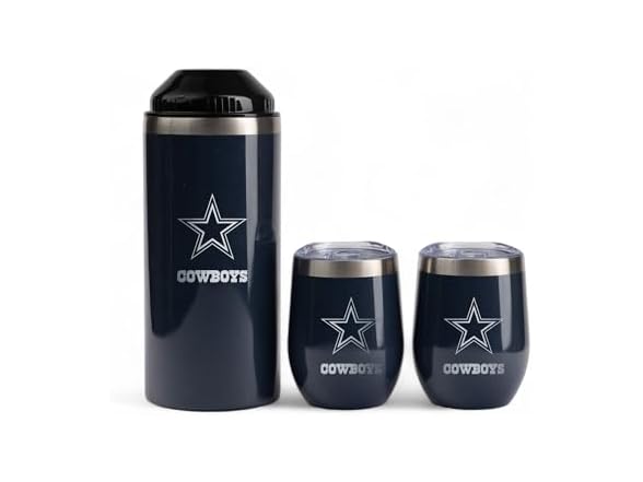 The Memory Company Officially Licensed NFL - Dallas Cowboys Wine Bottle Chiller with 2 Ceramic Lined 12oz. SS Stemless Wine Tumblers
