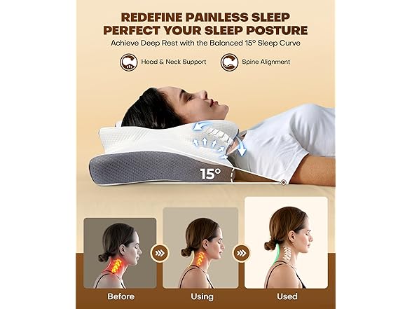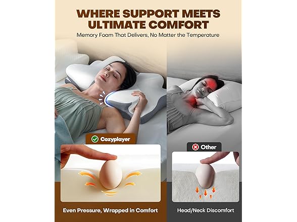 - EXPERIENCE ULTIMATE SLEEP COMFORT WITH THE ALL-NEW CONTOUR DESIGN - Fed up with morning neck pain? Perfect relief awaits! Equipped with the latest patented design, the Cozyplayer Contour Pillow reshapes the contour and hollow zone, promising to revolutionize your sleep. Designed with a hollow contour that skillfully cradles your head, it conforms to your neck’s curve at a 15-degree angle, achieving flawless spinal alignment and significantly lowering body pressure. No more waking up in pain!