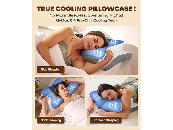 - TRUE COOLING PILLOW, NO MORE HOT NIGHTS - Our orthopedic pillow is perfected 'inside and out,' featuring second-generation cooling technology that instantly lowers skin temperature by 5°C! The pillowcase of our pillow utilizes a high-density 3D mesh design, while the sleep zone is treated with Q-Max 0.4 Arc-Chill technology, offering a real cooling effect that is instantly noticeable on your face. Moreover, with a core made of 98% breathable memory foam, the pillow offers excellent ventilation.