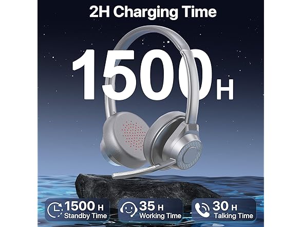 - Long Battery Life for All-Day Use - Enjoy up to 35 hours of listening time and 30 hours of talk time on just a 2-hour charge with this wireless bluetooth headset. With long standby time exceeding two months, bluetooth headset is perfect for busy professionals, students, and frequent travelers. Eliminate battery anxiety and stay productive with one of the most reliable bluetooth headphones with mic.