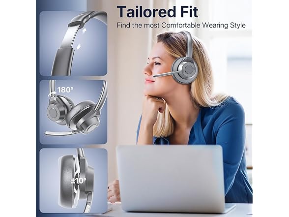 - Engineered for Comfort and Versatility - Weighing just 144g (5 oz), this headset with mic offers unparalleled comfort for all-day use. The soft ear cushions, adjustable padded headband, and 270° rotatable microphone allow you to customize your fit while ensuring clear sound on either ear. Perfect for professionals, students, and anyone who values comfort during long hours of use.