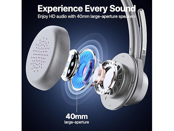 - Impressive Audio Quality - Experience exceptional sound clarity with the CPTEA wireless headset's 40mm dynamic driver and custom-tuned diaphragm. Whether you're on calls, working from home, or attending online classes, this bluetooth headset with microphone delivers immersive audio that keeps you focused and engaged. It’s an ideal wireless headset for work, school, and everyday listening needs.