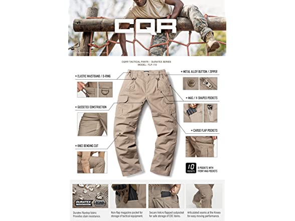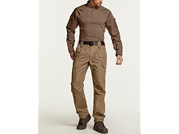 CQR Men's Tactical Pants, Water Resistant Ripstop Cargo Pants, Lightweight EDC Hiking Work Pants, Outdoor Apparel, Duratex Ripstop Coyote, 32W x 32L