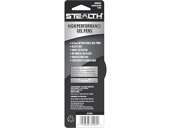 - Stealth Pens feature super fast drying gel ink that offers smudge free writing. Stealth gel ink flows smooth and consistant, keeping up with you during work or school