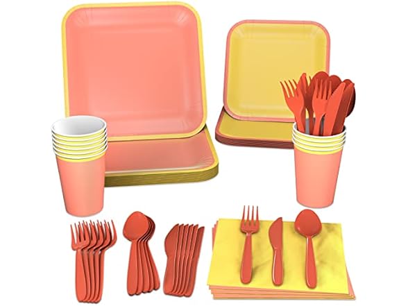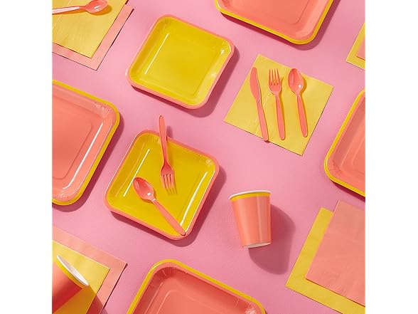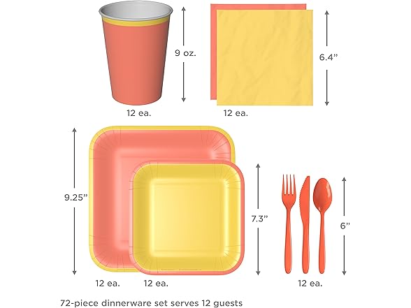 Crayola Color Pop Yellow and Orange Party Supplies (12 Dinner Plates, 12 Dessert Plates, 12 Paper Cups, 24 Napkins, 12 Sets of Plastic Cutlery) for Birthdays, Back to School, Halloween