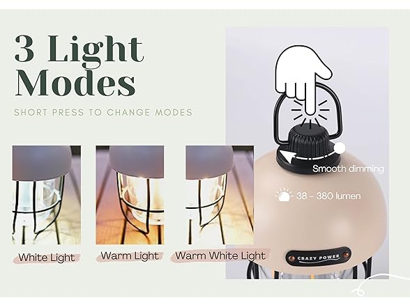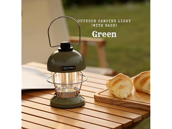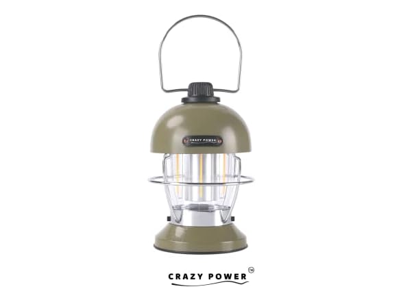 Crazy Power Camping Lantern Rechargeable LED Camping Light Premium Vintage Light 4500 mAh High Capacity Dimmable 3 Light Modes Waterproof for Camping Hiking Fishing Power Outages (CPB200 Green)