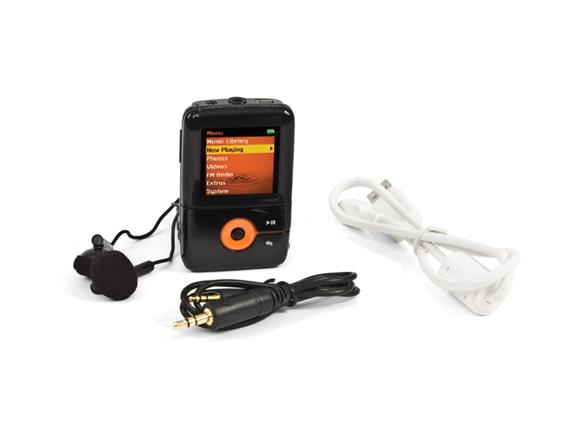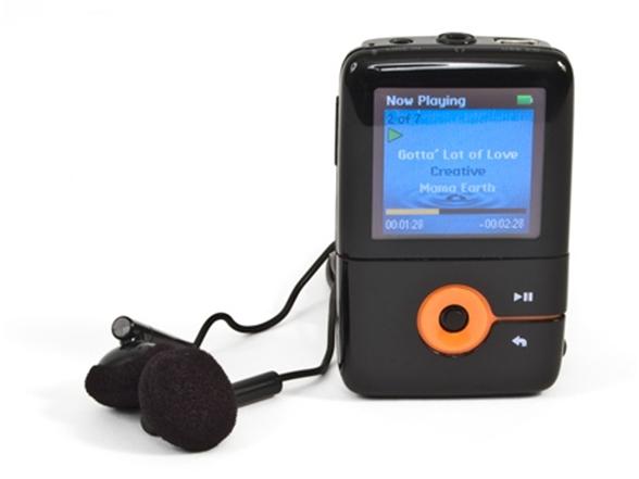 - 1GB model in black/orange stores up to 500 songs and supports MP3, WMA and Audible Audio.