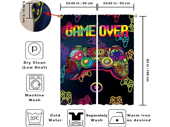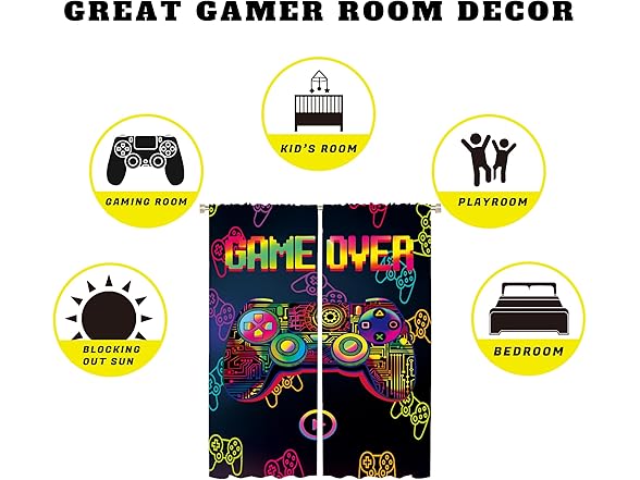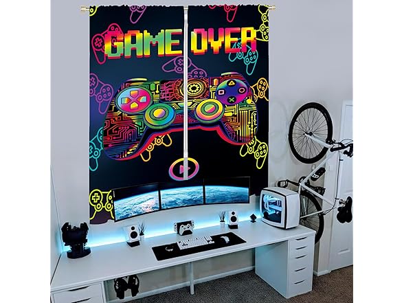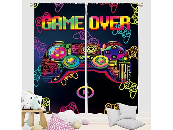 Csivoisw Gaming Curtains for Boys Bedroom, Gamer Window Curtain Glow in The Blacklight, Teen Boy Girls Video Game Blackout Curtains for Game Room Bedroom Decor 45x63 Inch
