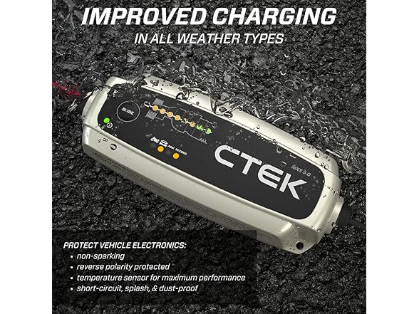 The MXS 5.0 offers a unique eight step approach to battery care. Fully automatic microprocessor controlled charger with built-in automatic temperature sensor features a unique combination of advanced charging modes and makes the new MXS 5. 0 the fastest, most effective and versatile consumer charger CTEK has ever made. The MXS 5. 0 features capabilities for improved charging in all weather. It is the perfect charger for the user with multiple vehicle types and higher demand battery charging and maintenance requirements. Provides an outstanding charging experience!