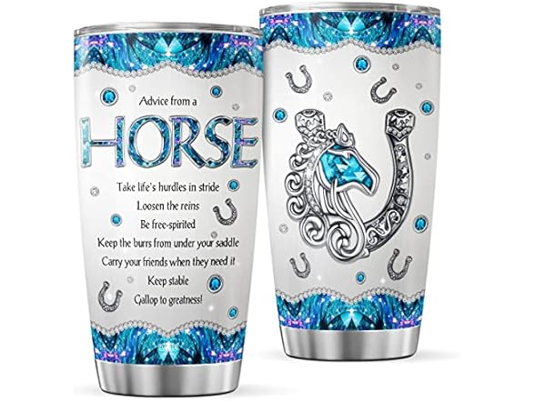 CUBICER Horse Jewelry Style Coffee Tumblers Insulated Tumbler Gifts For Equestrian Women Horse Lover Teenagers Birthday Large 20 Oz Mug Cup Stainless Steel Travel Camping Mugs