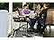 Cuisinart's Outdoor Electric Grill with VersaStand integrated adjustable telescoping base provides authentic grilling performance and flavor. Its small format fits easily on balconies and small patios - great for places that propane or charcoal grills aren't allowed. And although the grill is compact, its ample cooking grate is large enough to cook most family meals - 8 steaks, 8 hamburgers, 6 - 10 chicken breasts, or over 4 lbs. of fish! The grill heats up very quickly, and reaches temperatures high enough to sear a steak to perfection. The novel VersaStand telescoping base quickly transforms the grill from storage to tabletop to floor standing use, allowing the chef to enjoy grilling at a comfortable height. The stand is integrated into the grill for added convenience - making easy to store when finished. The grill plugs into a standard household electrical receptacle.