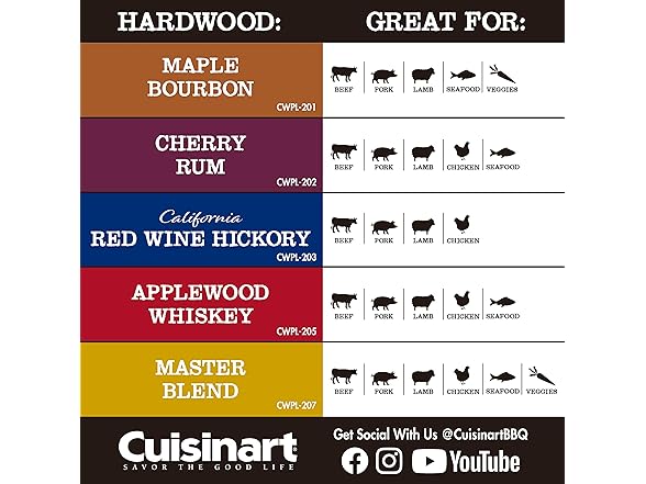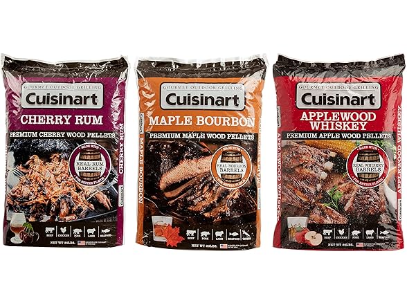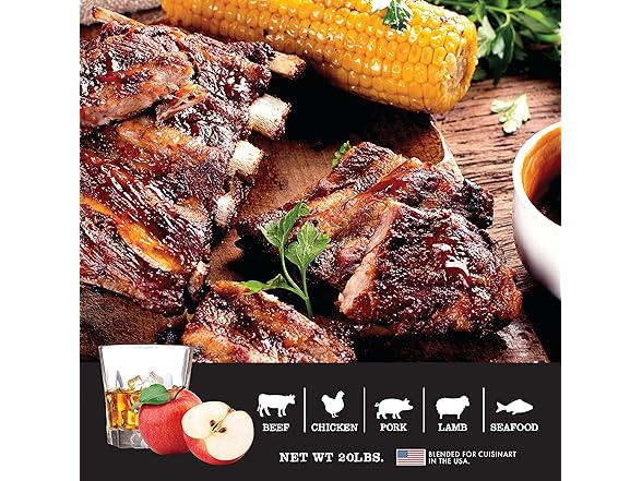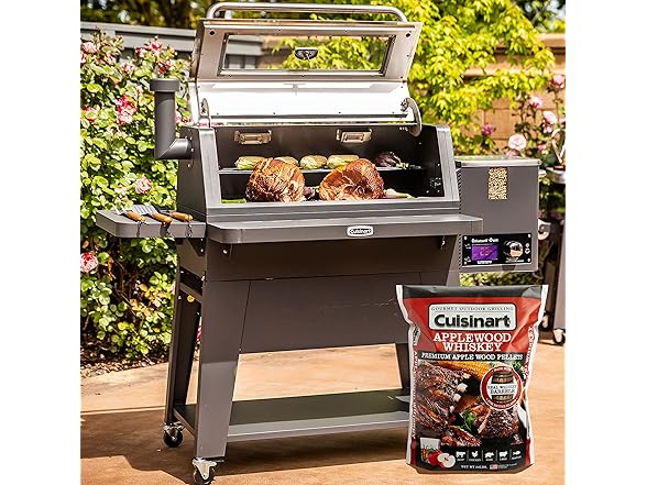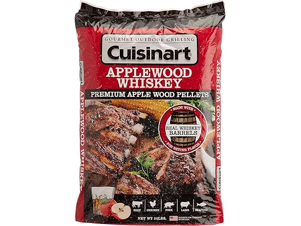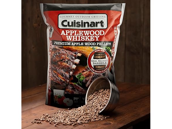 The Premium Applewood Whiskey BBQ Pellets are crafted from aged Whiskey barrels and applewood for an element of sweetness matched perfectly with the oak-aged flavor. Not just for pellet grills, these pellets can also be used with smoker tubes or smoker boxes on gas or charcoal grills. Pairs well with beef, pork, lamb, seafood, and vegetables. Make sure to check out Cuisinart's line of seasonings; great to pair with the Cuisinart Pellets. The prestigious Cuisinart brand is not limited to their famous food processors - plugged or unplugged, nobody covers the modern chef like Cuisinart. Cuisinart is a full-service culinary resource with a wide array of products, preferred by chefs and favored by consumers. And now you can take the world-famous Cuisinart brand to your patio, lawn, tailgate, or campsite with their comprehensive line of Cuisinart outdoor grilling products available now at Walmart.