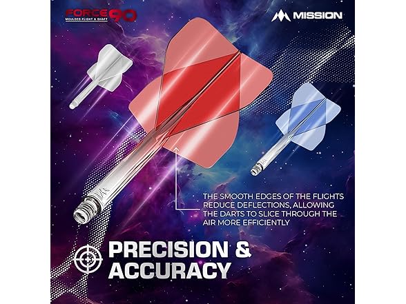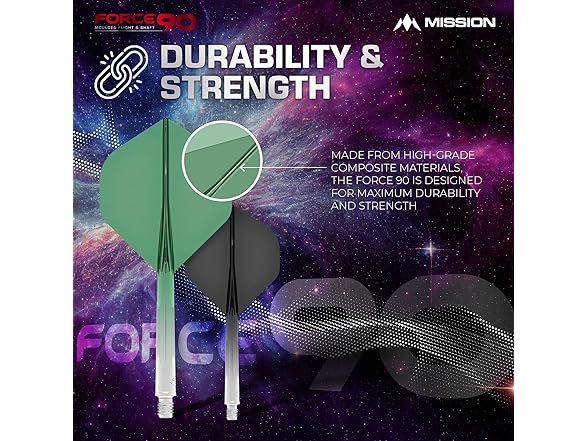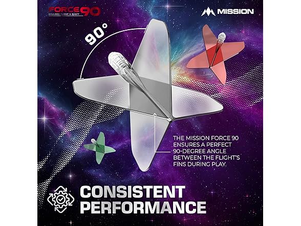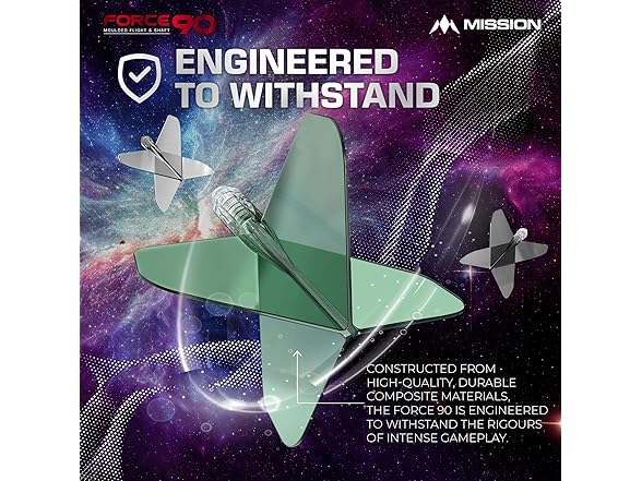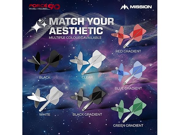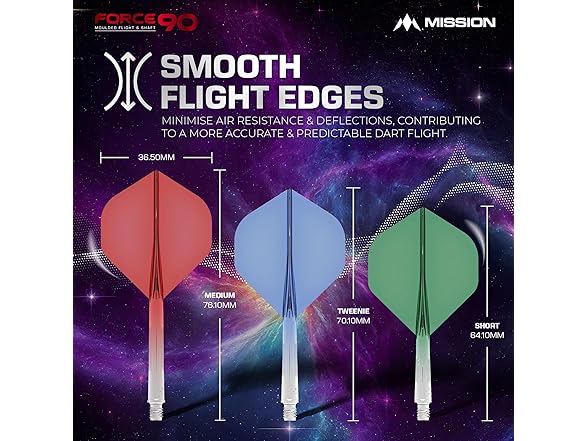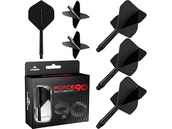 Mission Darts Force 90 | Integrated Precision Moulded Dart Flight And Shaft System, Pack of 3 Professional Durable 2-In-1 Combined Dart Flights And Stems | Standard No.2 (Black, Tweenie)